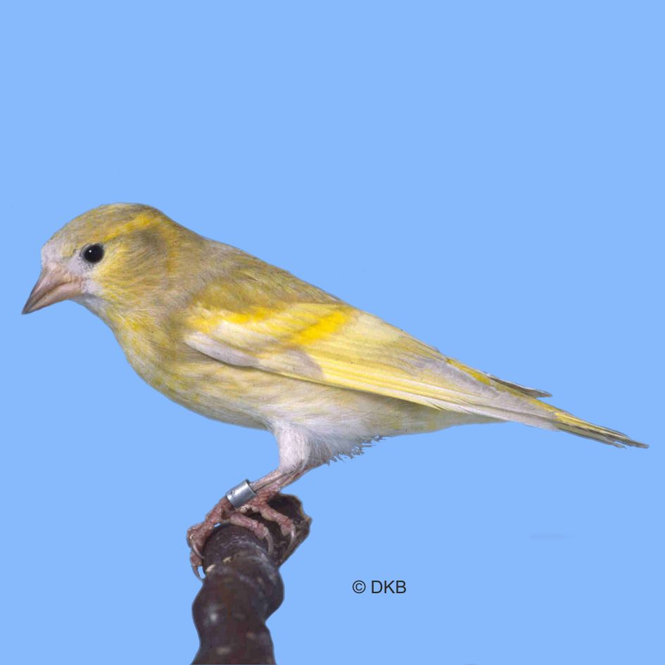 Bei Zeisigen mit zwei Allelen des dominanten Dilute-Gens (homozygot) hellen die schwarzen oder braunen Eu-Melaninbereiche sehr stark auf, beeinflussen vorhandenes Phaeomelanin und das gelbe bzw. rote Lipochrom jedoch nicht.